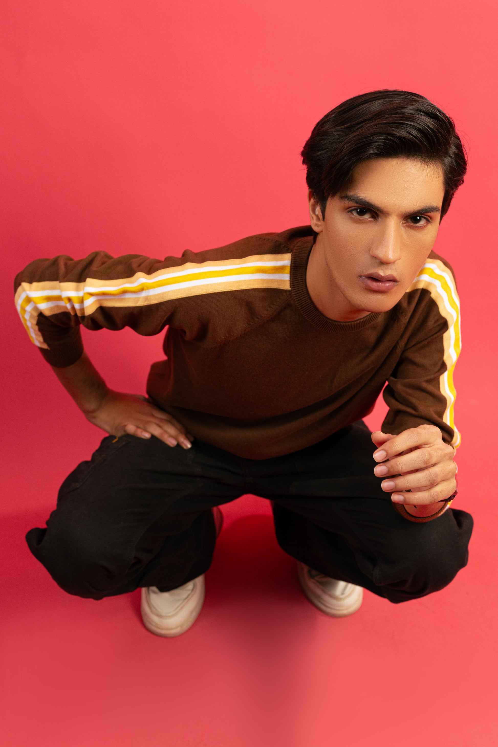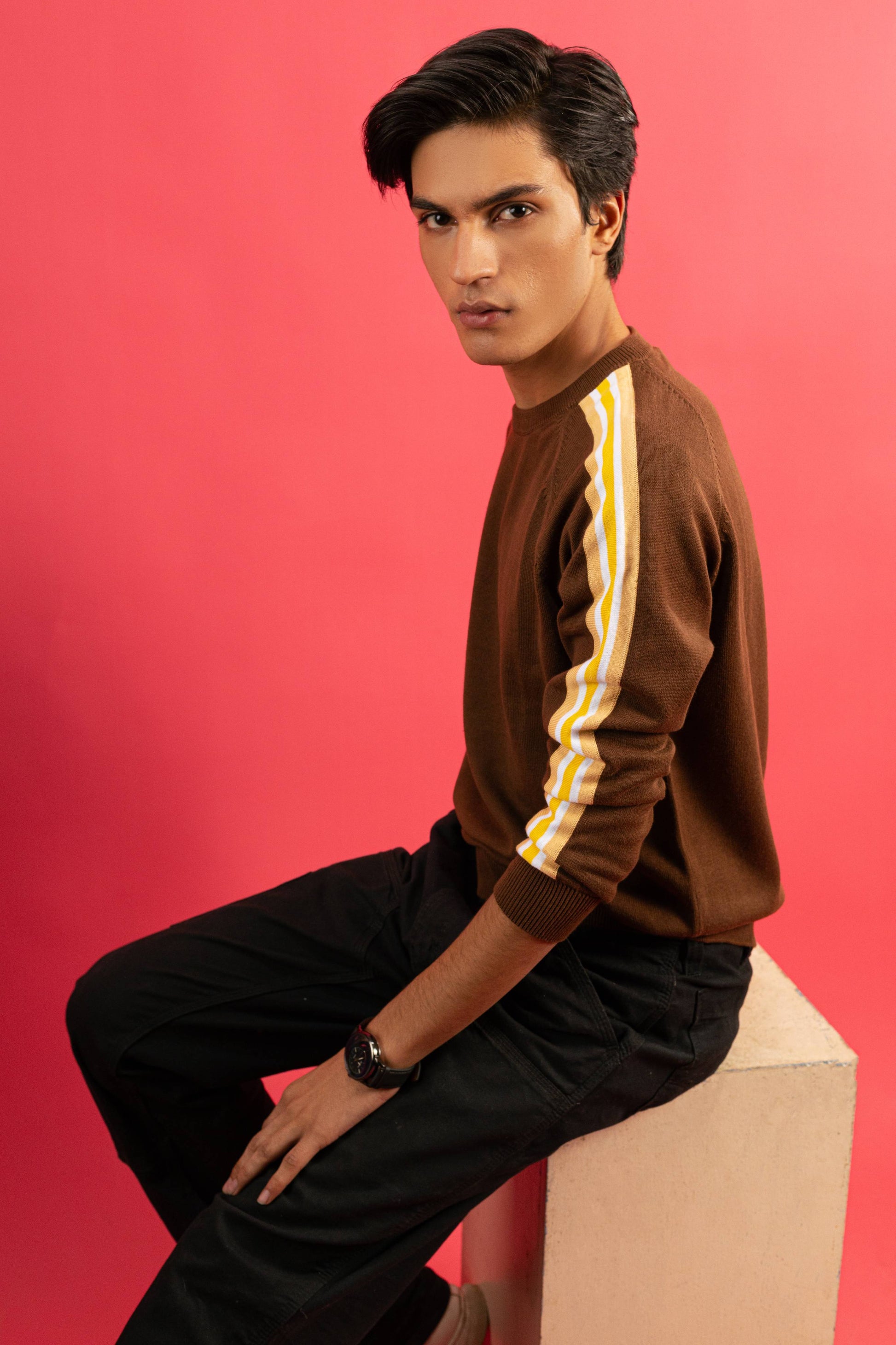 A dynamic and stylish sweater featuring vibrant yellow stripe accents, perfect for bringing energy and confidence to your casual wardrobe.