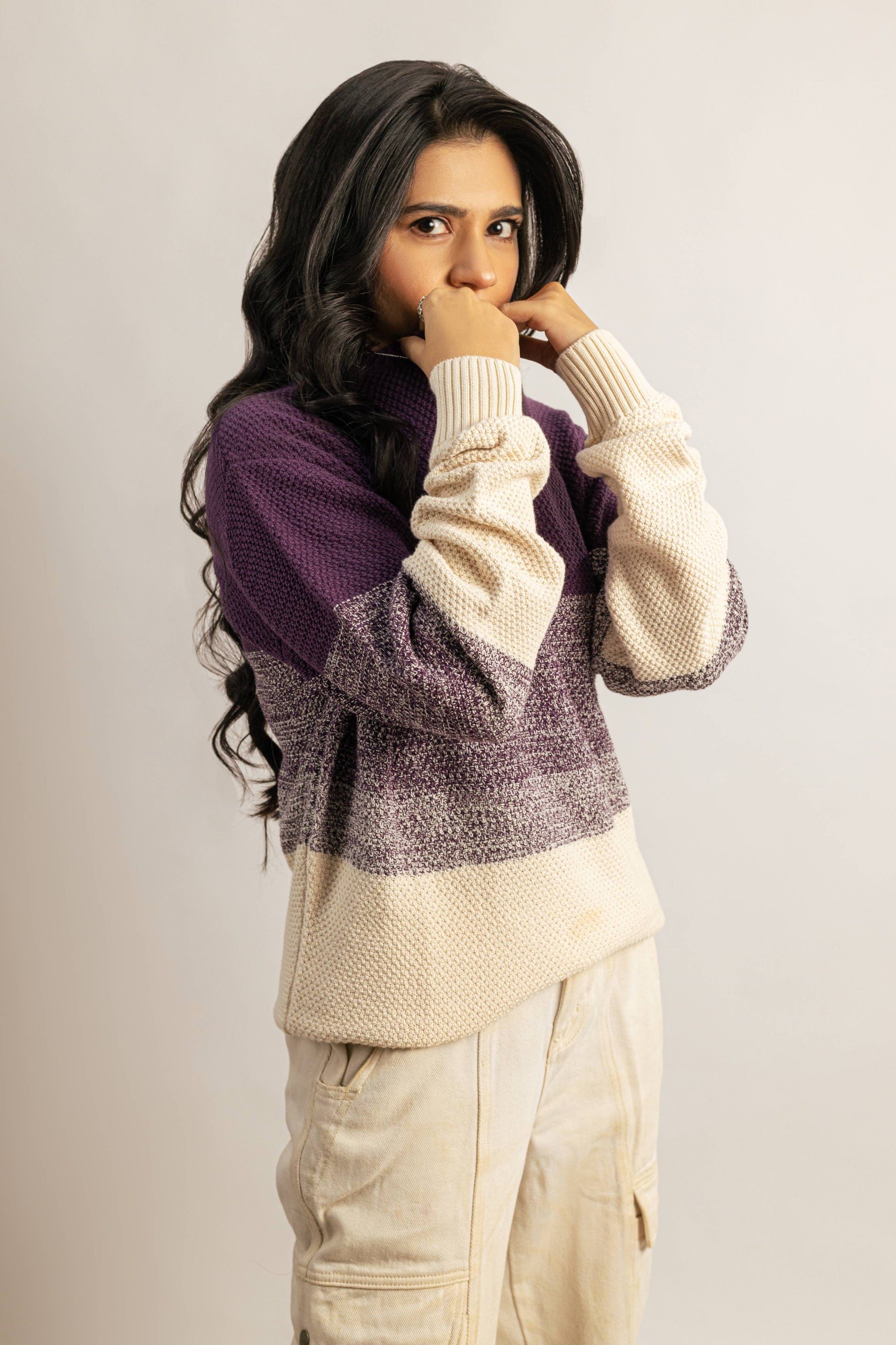 Color Block Crew Neck Sweater For Women